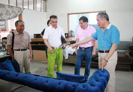 本刊讯 7月13日,广东省经企联领导何礼森、李克伟、朱英斌到位于中国最美小镇——清溪镇的理事单位东莞市享昱家具有限公司考察调研,受到了该公司董事长张玉才的热情接待。